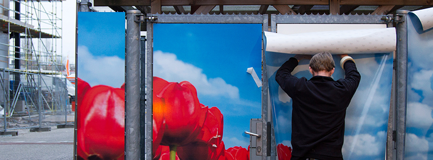 - Komt de sticker op een raam? Aan welke zijde wordt de sticker geplakt?
