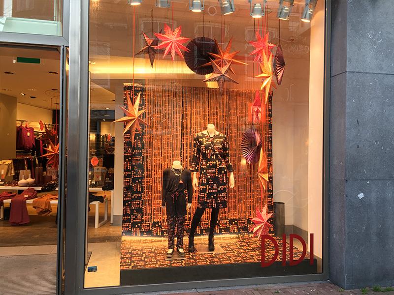 indoor banier creert u meer sfeer in de etalage van uw winkel. M2 Printing werk veel samen met visual merchandisers om etalages aan te kleden. Een veel gebruikt etalagedoek is een deco