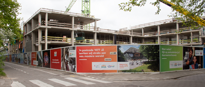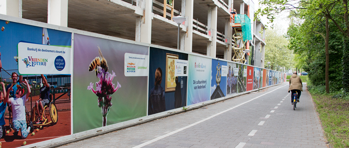 Om tijdens de bouw van het nieuwe pand een prettige uitstraling naar de buurt te garanderen is er gekozen voor een mooie aankleding van de aanwezige bouwschutting. Uiteraard is hier ook gekozen voor een duurzame oplossing. M2 Printing heeft op verzoek van het vaste reclamebureau