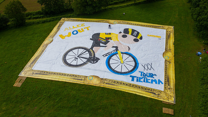 Speciaal voor de "meesterknechten" van Tour de Tietema produceerde M2 Printing het grootste schilderij ter wereld. Wie zondag 28 juni de tweede etappe van de Tour de France heeft gekeken, kan het kunstwerk niet ontgaan zijn. Het schilderij met wielrenner Wout van Aert, heeft een afmeting van ruim 1600 m2 en is ingekaderd met 500 pallets. Het doek werd 40km van de finish ontvouwd op een veld in Gausson.