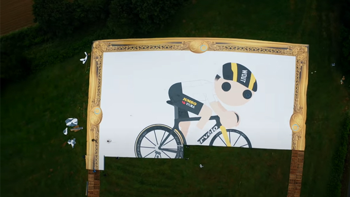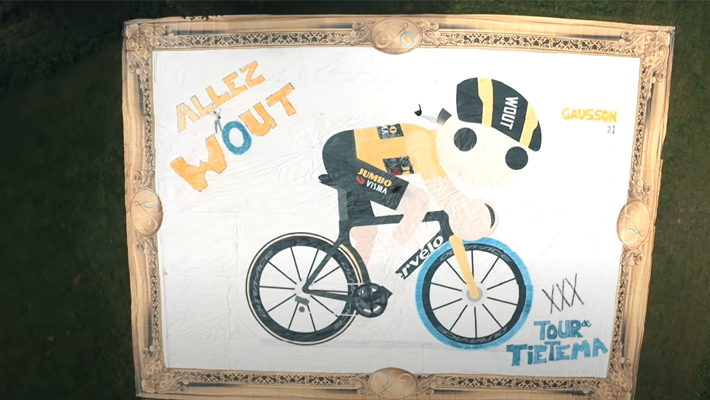 Samen met Swapfiets en TDE bedachten Bas Tietema en zijn crew om het grootste schilderij ooit te maken, om wielrenner Wout van Aert aan te moedigen. De Youtubers van Tour de Tietema zetten met leuke videocontent de wielerwereld op z'n kop. Een wheelie-contest in de tour de france, of trainen met profs voor de Ronde van Vlaanderen. En nu dus de wereldrecordpoging voor het grootste kunstwerk ooit.