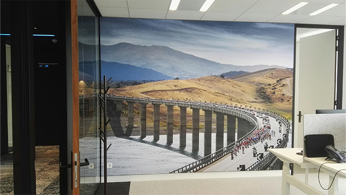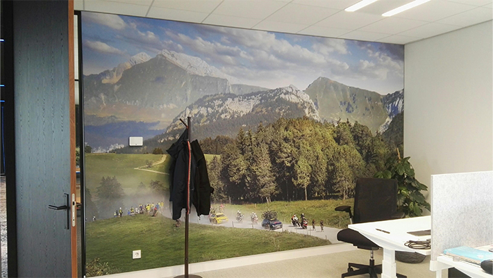 In opdracht van en in samenwerking met fotograaf Gerrit Schreurs is eind 2021 een groot gedeelte van het nieuwe hoofdkantoor van Tacx/Garmin in Oegstgeest voorzien van prachtige muurvullende visuals.